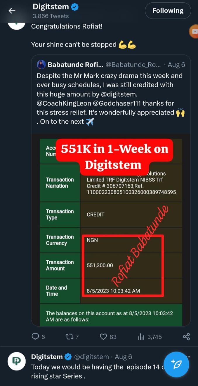 What's Digitstem ?Digistem Affiliate Marketing is a platform that pays it's Affiliate in dollars meaning when you sign up as an affiliate you'll be positioned to promote digital products and easily get** paid your commission in DOLLARS**NOTE: You will be paid to your Local. account when you request for Withdrawal.Digitstem is one of the platform for affiliate marketing in Nigeria.So what happens is once you register as an Affiliate on digitstem, you have access to market any product and earn a commission. These products are digital products.Let say for instance you decided to promote a product and sell and the amount of the product is 50k with a 50% commission.That means when you sell one of that product, you'd earn 25k.Now let's imagine you sell 5 of that product in a week, which is very possible,you earn 125k that week because digitstem pays every Saturday.💰One thing I love about digitstem is when you register as an Affiliate, they give you access to their course that will put you through everything you need to know.Do amazingly well as an affiliate and you'd also be having exclusive access to my mentorship which will shorten the learning curve.This system of making money online selling other people’s products is called AFFILIATE MARKETING.